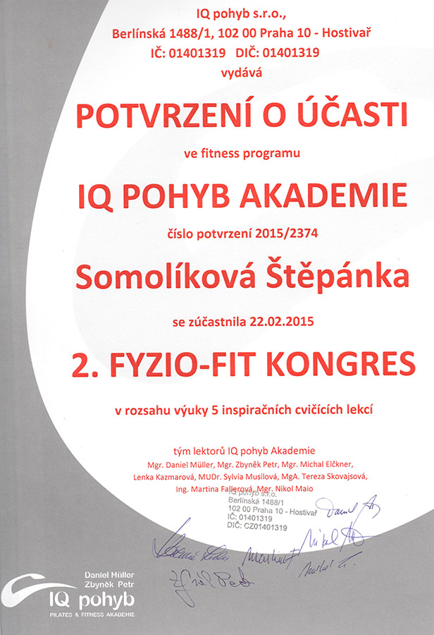 Následně jsem chtěla rozumět tomu, proč nás bolí tady, když děláme tohle a jak to udělat, aby nás nebolelo. Bylo tedy jen otázkou času, kdy se vrhnu i na problematiku tělovýchovy. Tento rekvalifikační kurz Zdravotní tělovýchovy jsem po velkém úsilí úspěšně absolvovala v centru IQ pohyb akademie pilates a fitness Daniela Müllera a Zbyňka Petra. Nauka o pohybu se stala mou další vášní.